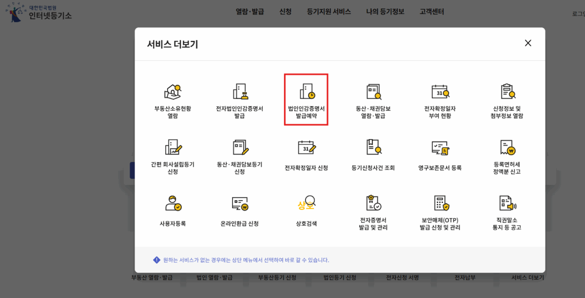 인감변경 신고와 본인서명사실확인서 주요 서비스 바로가기